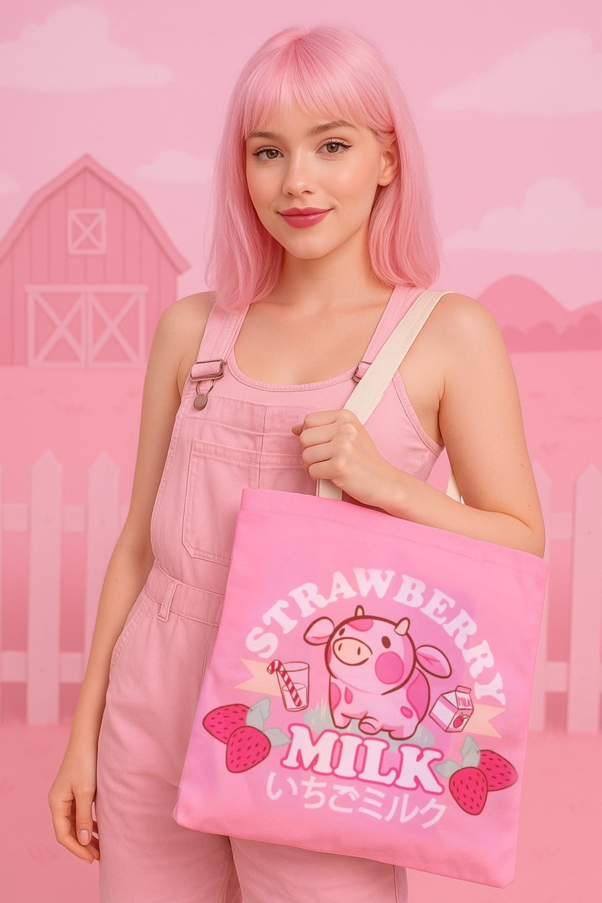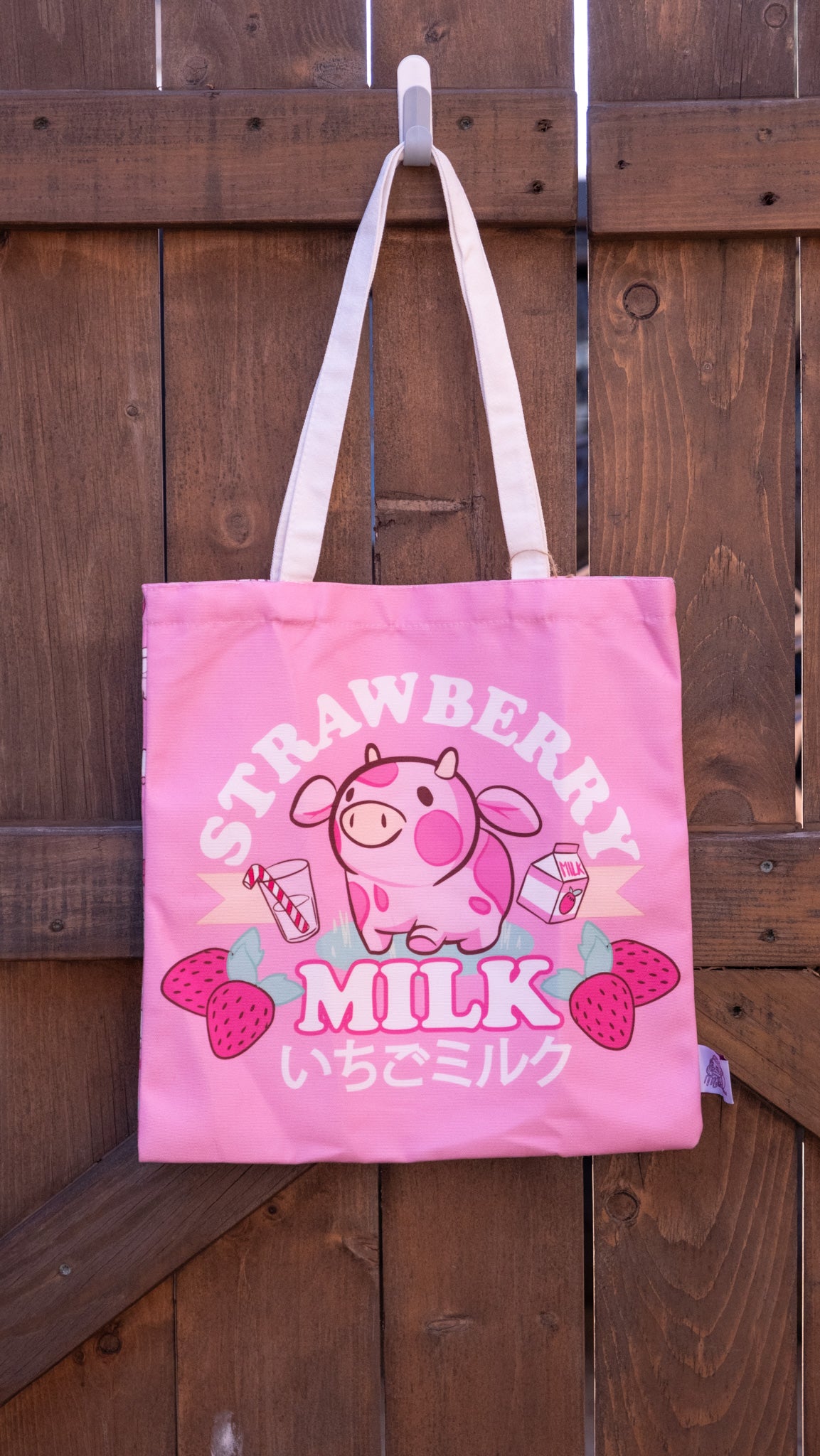 Strawberry Milk Cow Tote Bag By Meldoodles